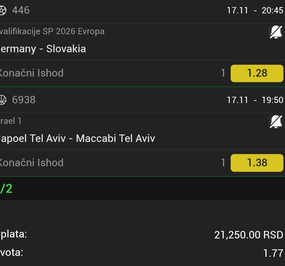Ukupna kvota je oko 3. Maksimalni ulog.
