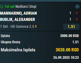 Prvi par je #LIVE mannarino osvaja 4 ili više gema u prvom setu protiv Saše Bublića:
