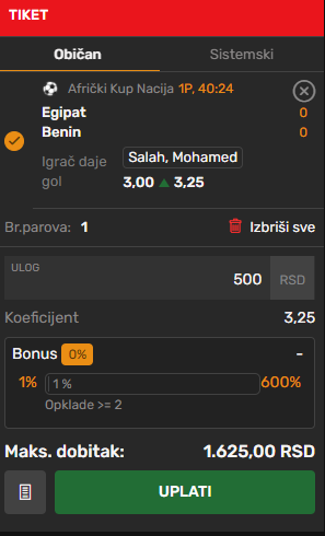 Tenis koji pocinje za koji minut nema sanse za pad, pa da probamo na sitno, kvota celog tiketa je oko 5, a sam tenis je 2.5 i odlican je za duplanje.