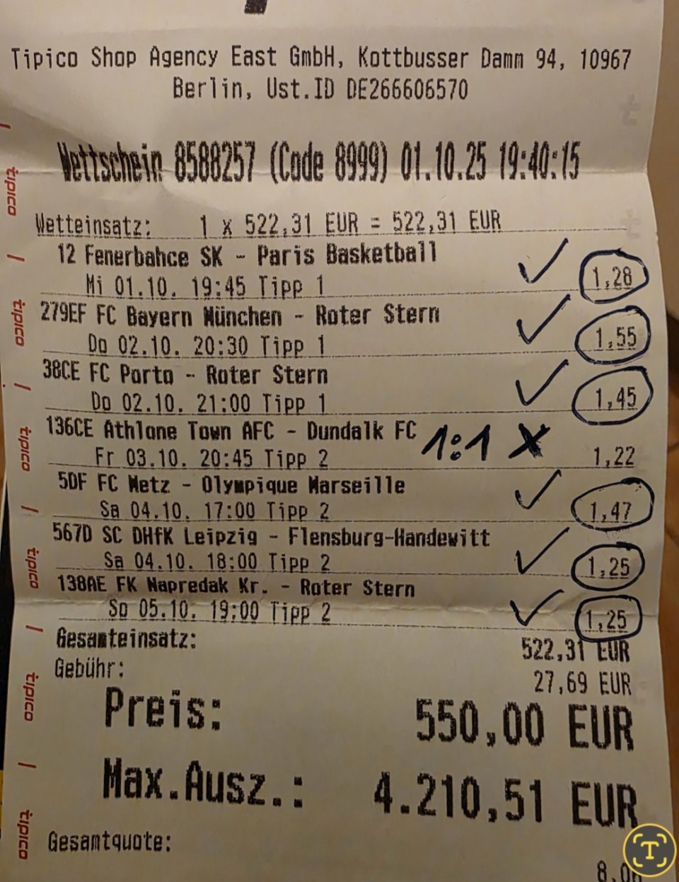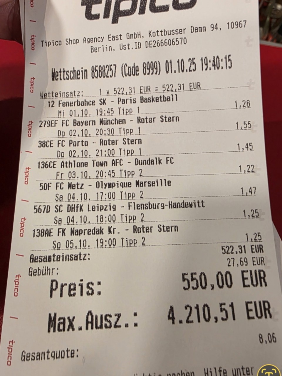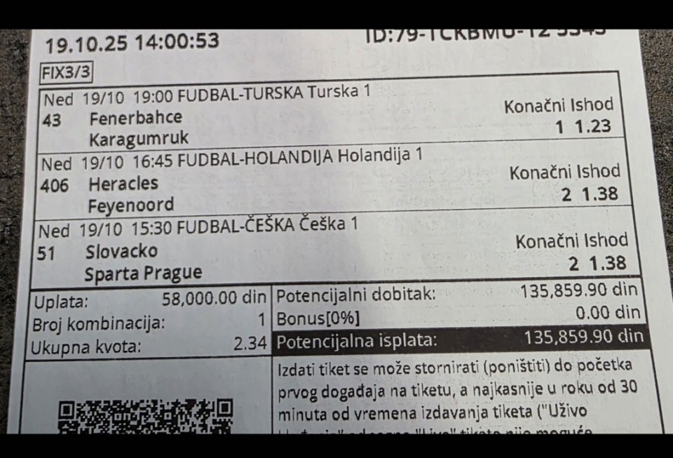 Tiket na uvid zbog fer pleja i dokaz da sve što napišem na zidu to i odigram. Kvota je bila vredna rizika, nije prošlo tako da više sreće u sledecem izvlačenju, sportski pozdrav🫡🫡🫡