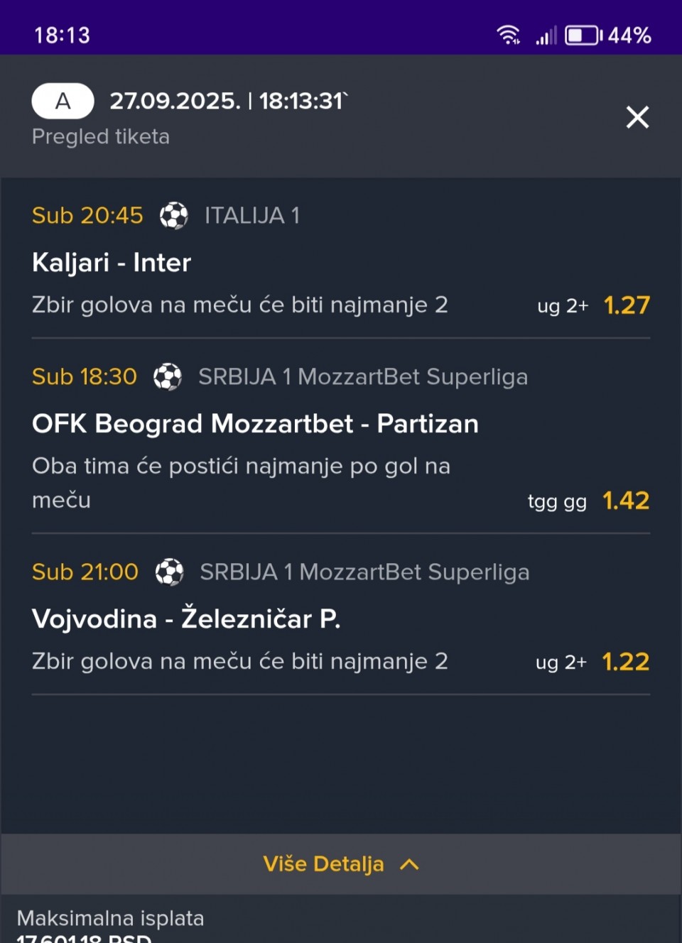 | Cvija (4) | (6/8) | 75% | 21.20 | |