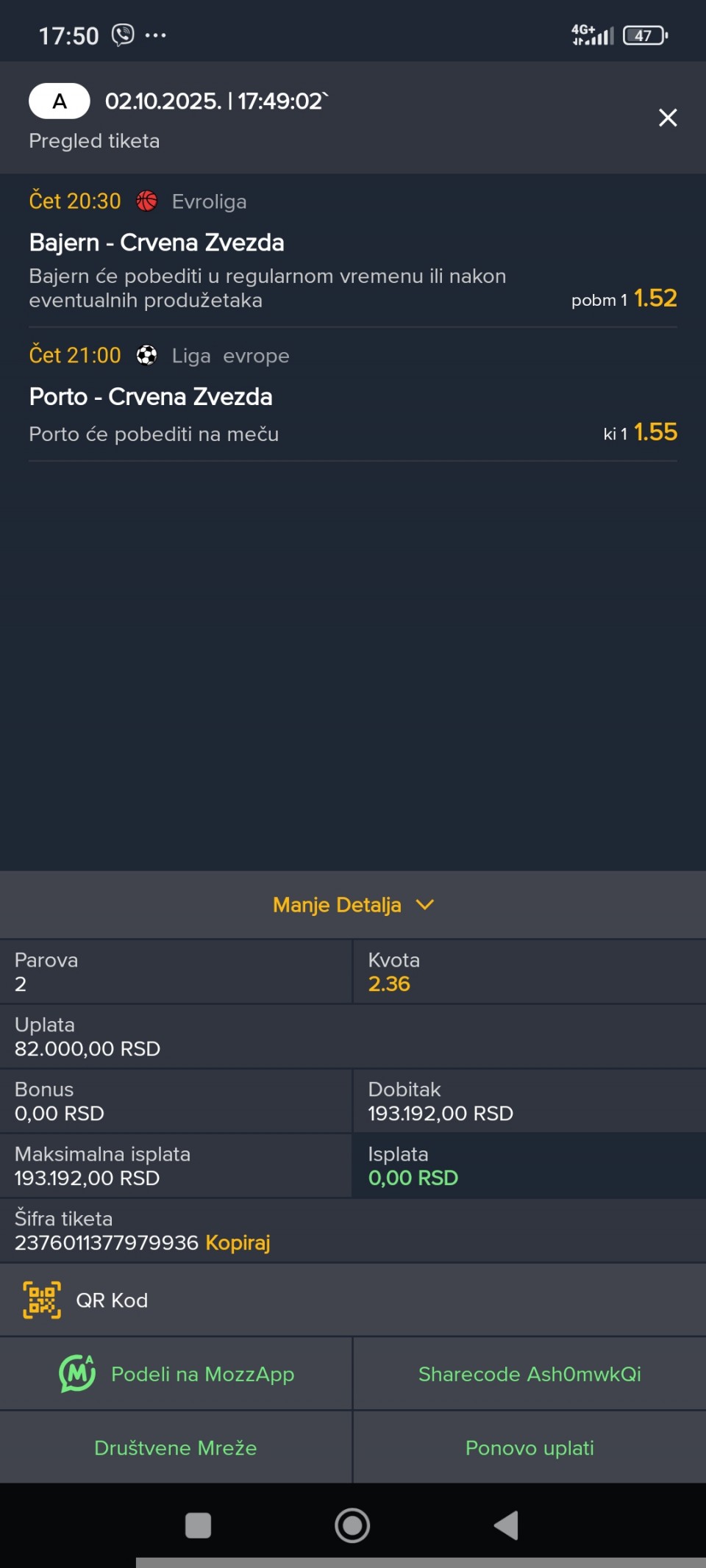 Mislim ako odigram istu tekmu na vise tiketa da li se svaki tiket racuna