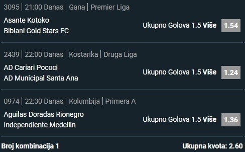 15:00 Švedska Superettan Falkenbergs FF Landskrona BoIS Ukupno Golova 2.5 Više 1.77