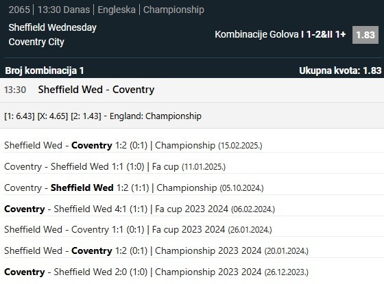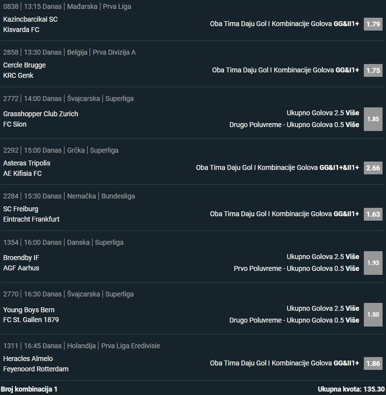 Ovo je kroz bet builder. Ako uzmeš klasičnu igru I1+&3+ kvota je svega 1.86...