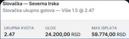 Tip je dobitan ako Irska odigra nerešeno. Ako izgubi sa jednim golom razlike tip je void...