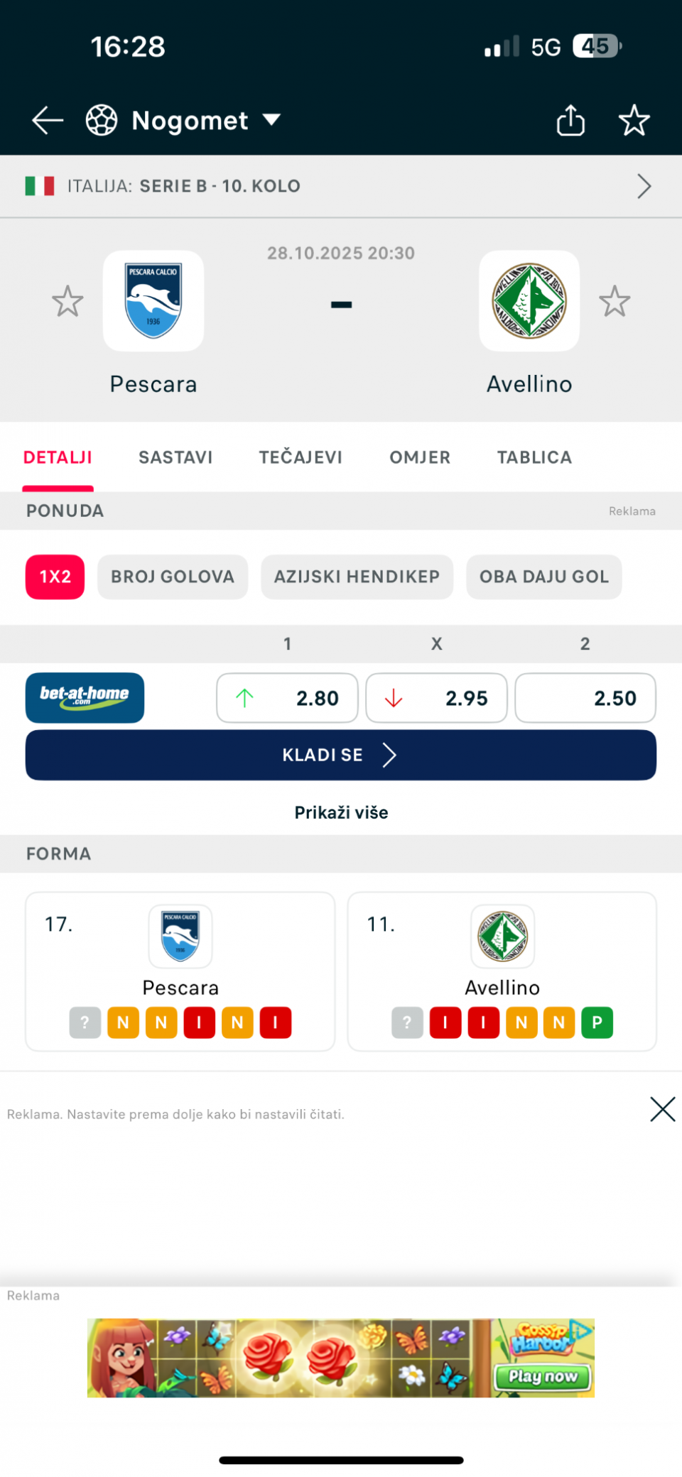 Sve u svemu italijanske nize lige pretezno X dolaze ali odlucio sam se 1.Mislim da je kvota navlakusa za neke stvari pa cemo vidjeti.Po svemu sudeci 1 bi trebao doci