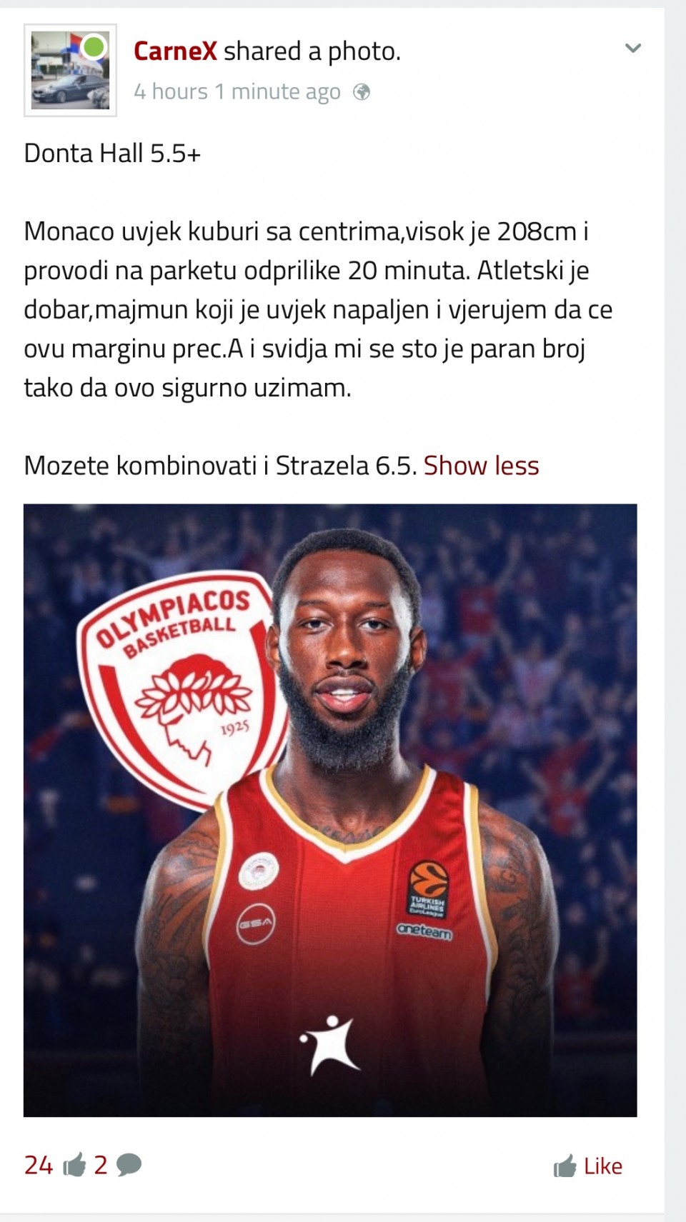 Itekako ocigledan da ce preci svoju marginu veceras.U Evropi 20-tak minuta provodi na terenu.Obicno uzima 3-4 suta za 3 na utakmnici.Voli da navuce igrace za slobodna bacanja.Bek za ovu marginu cu uvjek...#EUROLEAGUE2