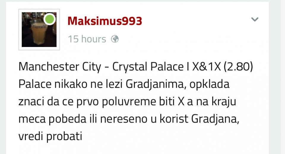 Palace nikako ne lezi Gradjanima, opklada znaci da ce prvo poluvreme biti X a na kraju meca pobeda ili nereseno u korist Gradjana, vredi probati